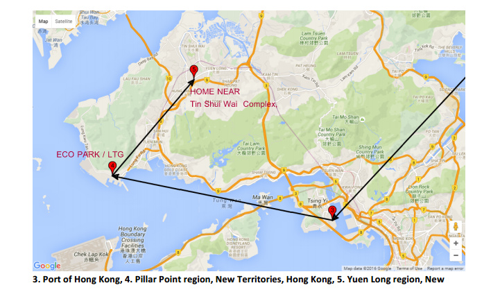 We tracked the data we had - the LCD from Seattle (repeat - not the printer from Boston) on its journey, via the coordinates no longer obscured in Hong Kong. Compare the two screen shots from Monitour and Google Maps of the site in Yuen Long (New Territories HK) below.... Pillar Point, home of EcoPark, Yuen Long, New Territories, Hong Kong.